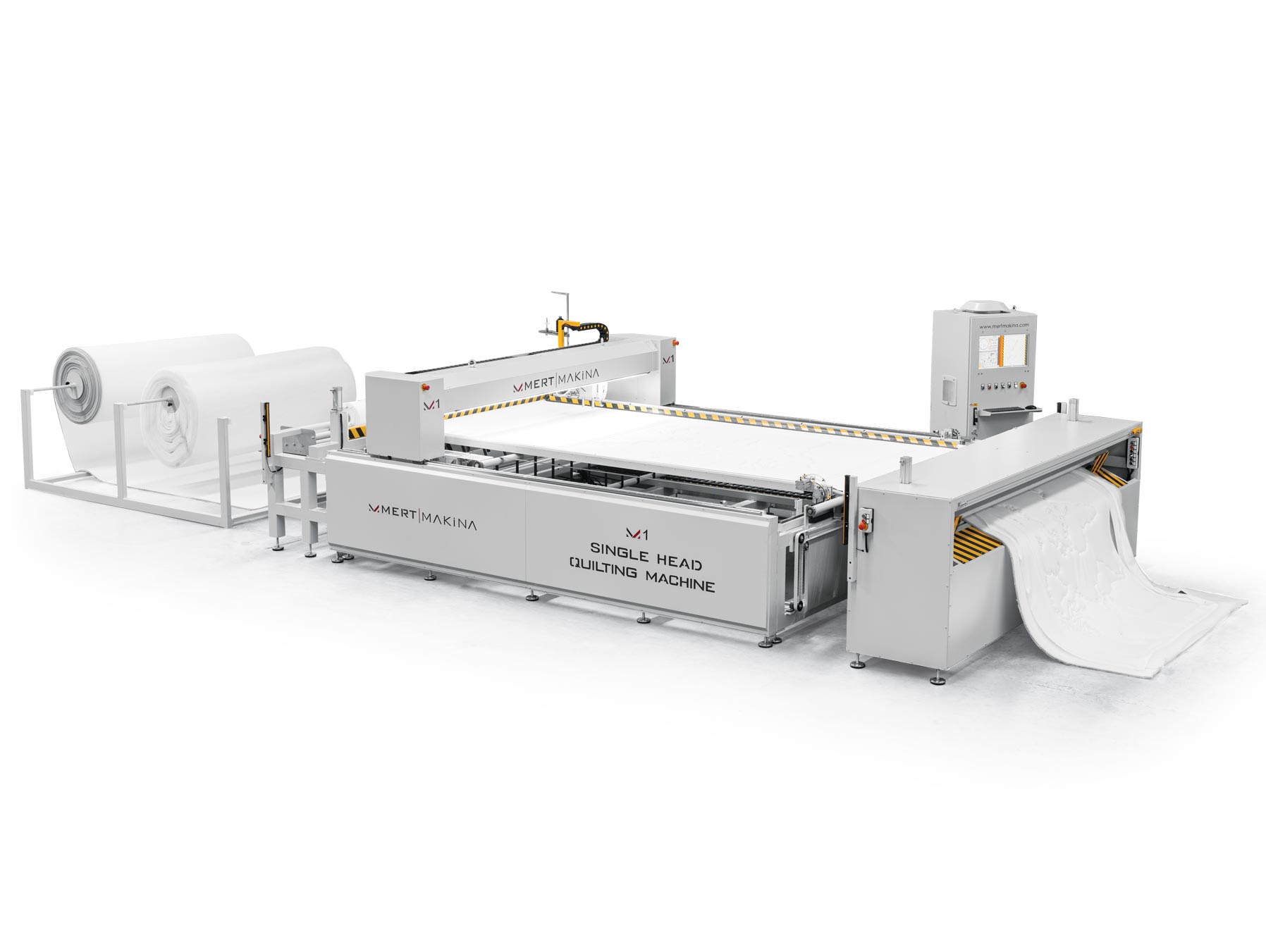 Mert Makina sizlere dünyanın en hızlı rulo beslemeli makinası olan M-1 Tek Kafa Kapitone Makinasını sunmaktan gurur duyar. Yıllardır kapitone makinası üzerindeki edindiğimiz tecrübeler ile üretmiş olduğumuz makinamız 3500 devir hızında sürekli dikiş yapabilme kabiliyetine sahiptir. Dürkopp Adler 867 dikiş makinası ile kalın ve ince malzemelerde mükemmel dikiş kalitesi sunar. Latex, visco, sünger, memory foam, deri, yün gibi malzemelerde hatasız dikiş özelliği bulunmaktadır. Güçlü şasesi sayesinde uzun yıllar hatasız çalışabilir. Özel olarak geliştirmiş olduğumuz boy kesim sistemi sayesinde milimetrik kesim yapabilir. Yatak, ev tekstili, mobilya ve otomotiv sektörü için özel olarak tasarlanmış makinamız dünyanın en hızlı makinası olması sayesinde sektörde en çok kullanılan makinadır.