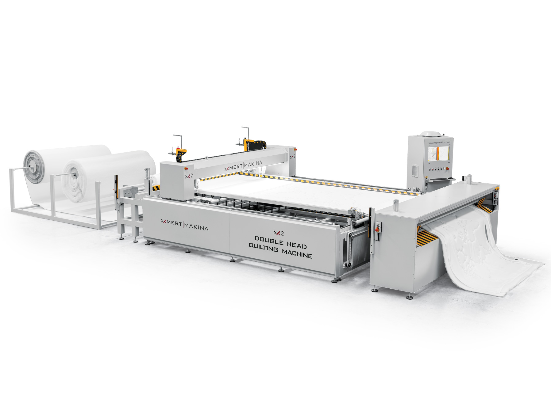 Mert Makina sizlere dünyanın en hızlı rulo beslemeli makinası olan M-2 Çift Kafa Kapitone Makinasını sunmaktan gurur duyar. Yıllardır kapitone makinası üzerindeki edindiğimiz tecrübeler ile üretmiş olduğumuz makinamız 3500 devir hızında sürekli dikiş yapabilme kabiliyetine sahiptir. Dürkopp Adler 867 dikiş makinaları ile kalın ve ince malzemelerde mükemmel dikiş kalitesi sunar. Latex, visco, sünger, memory foam, deri, yün gibi malzemelerde hatasız dikiş özelliği bulunmaktadır. Güçlü şasesi sayesinde uzun yıllar hatasız çalışabilir. Özel olarak geliştirmiş olduğumuz en ve boy kesim sistemi sayesinde milimetrik kesim yapabilir. Yatak, ev tekstili, mobilya ve otomotiv sektörü için özel olarak tasarlanmış makinamız dünyanın en hızlı makinası olması sayesinde sektörde en çok kullanılan makinadır.